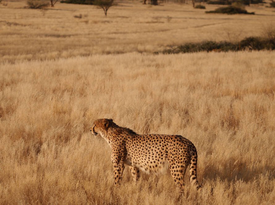 In Namibia regnet es oft monatelang nicht. Während wir nach zwei Stunden ohne Wasserflasche schlappmachen, lächelt der Springbock nur müde.